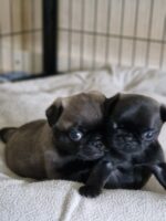 Wir haben wunderschöne gesunde Retromops Welpen in schwarz und platinum die noch ein liebevolles Zuhause suchen. Geboren wurden sie am 13 Oktober und dürfen entwurmt, geimpft und gechipt ab Anfang Januar in ihr neues Zuhause umziehen. Die Eltern sind auf Erbkrankheiten untersucht und gesunde, sportliche Hunde. Die Kleinen haben einen Fremdblutanteil von 6.5% (shiba inu)