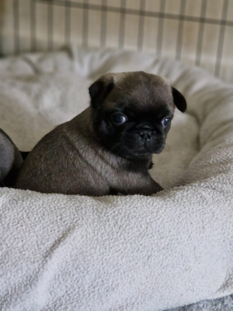 Unsere Retro- Mops- Welpen in der seltenen Farbe sable sind da. 3 Rüden und 3 Hündinnen